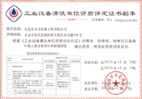 A級工業設備化學清洗資質證書